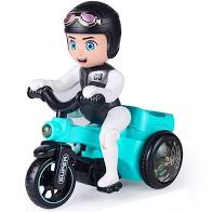 - ● ⭕ DOES 360 DEGREE WHEELIES: More than just ride along, the boy on this toy trike does actual stunts too!! He stops, pulls up a wheelie, does a 360 degree turn, then continues on his way. This is the perfect toy for keeping your kids happy and engaged for hours on end.