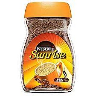NESCAFÉ Sunrise is an instant coffee-chicory mixture made from 70% coffee powder and 30% chicory. This instant coffee is made with the fine blends of Arabica and Robusta coffee beans from the farms of South India. These beans are slow roasted in rotating drum roasters till they develop the perfect aroma. Nestle’s world class technology then ensures this aroma is retained all through the coffee making process and finally capture in aroma granules. This soluble coffee is easy to use, ensuring coffee-making doesn’t seem like an inconvenience. So, rise up to the awakening taste and rich aroma of NESCAFÉ Sunrise coffee and let new opportunities come to you. THE NESCAFÉ PLAN: We are committed to using sustainable processes in our coffee production and taking care of our planet by introducing better farming techniques. Nescafe works directly with 1,70,000 coffee farmers every year and helps them grow better quality, delicious coffee which leads to increase in their income. Usage: Simply follow the instructions on the back of the pack and mix the coffee granules to hot water, sugar and milk to release the rich aroma in your cup every morning. Storage Recommendation: Do store the instant coffee powder in a cool, dry and hygienic place. To ensure lasting freshness, close the lid tightly after every use. Always use a dry spoon.